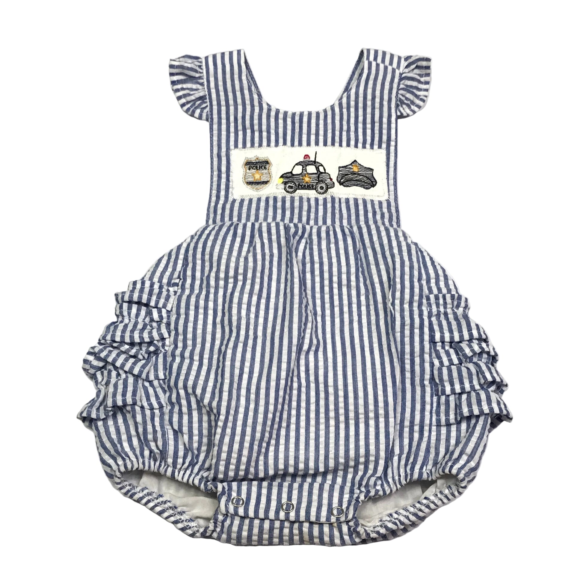 LTC Seersucker Embroidered Appliqué Police Bubble Romper Size 12M