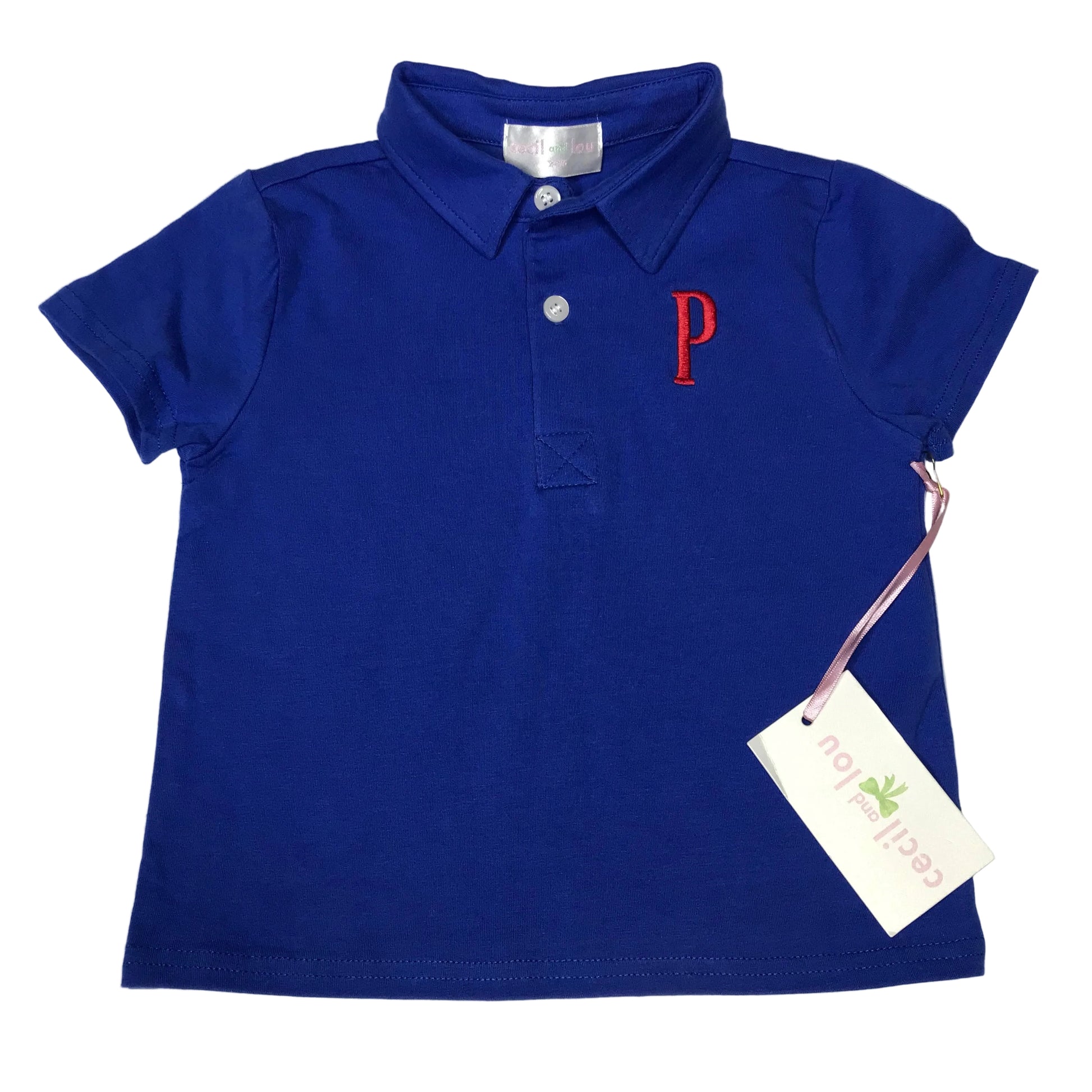 NWT Cecil and Lou Baby Boys Polo Shirt Blue “P” Monogram